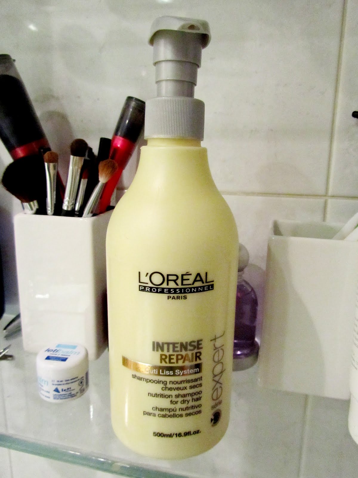 - Este es mi champú diario. Es de la gama profesional de champús de L'Oreal. El mio concretamente es el Intense Repair Cuti Liss System, champú nutritivo para cabellos secos. Nutre y repara el cabello seco. El pelo se me queda realmente suave, liso, y muy fácil de desenredar. Estoy muy contenta con el la verdad, y creo que en mucho tiempo no voy a cambiar. Os recomiendo que los probéis. No tenéis que utilizar concretamente este, pues hay una amplia gamma de champús para todo tipo de cabellos. Yo lo adquirí en una tienda al por mayor de peluquería donde me salio mucho mas barato (500 ml por 15.95 €), sin embargo, en las peluquerías por mucha menos cantidad el precio ronda los 15 euros también... La cuestión es preguntar en varios sitios, que os informen y elegir el que mas os guste y os convenga al mejor precio ;)