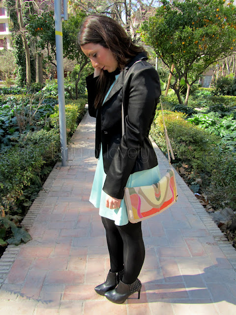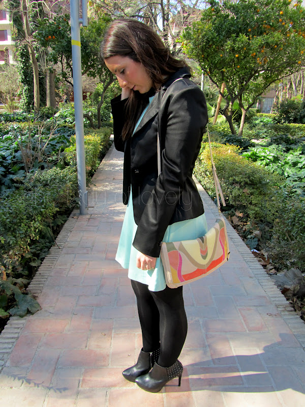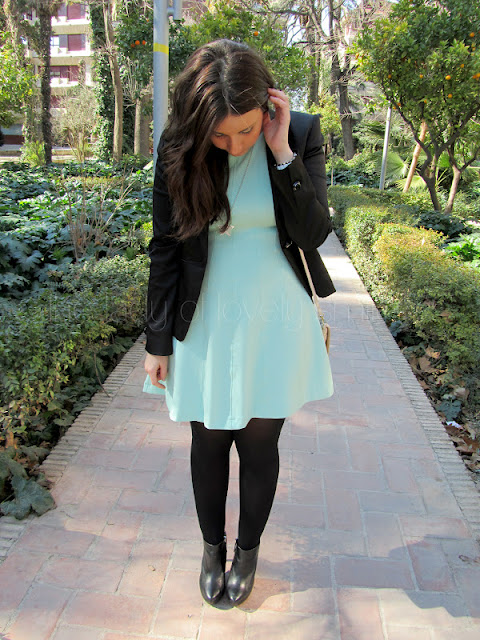Pastel Dress. El color de la temporada que podemos encontrar en vestidos, accesorios y complementos, blusas, chaquetas and etc. And for an important occasion as was the baptism of Adriana, a mini Turista Style (AQUI) can't be less. But , isn't spring yet, so look for a way to combine the dress with one of my favorite colors: Black. Informally arranged with a touch of dark stockings and boots but comfortable and stylish. What do you think of the combination of pastel dress?