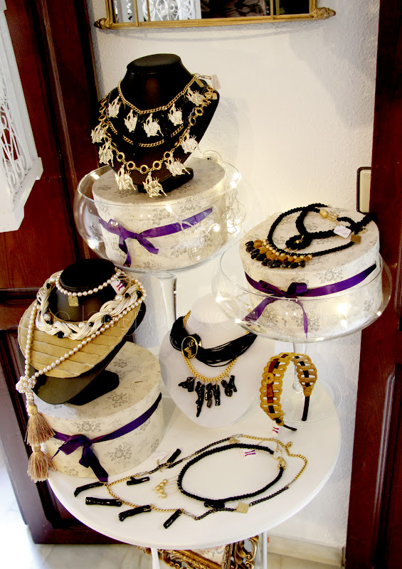 En un ambiente intimo, casi familiar, con una perfecta decoración vintage cuidando hasta el mas mínimo detalle, pudimos descubrir algunas de sus piezas exclusivas para la nueva temporada inspiradas en el Art Decó. Desde colores fluor hasta pastel, desde el metal hasta el cuero, sin olvidar los collares babero (un "must have" de la firma) estas dos mujeres emprendedoras nos enseñaron las diferentes colecciones. Todas ellas con piezas exclusivas (nunca hay dos iguales) lo que da una cierta seguridad a las clientas.