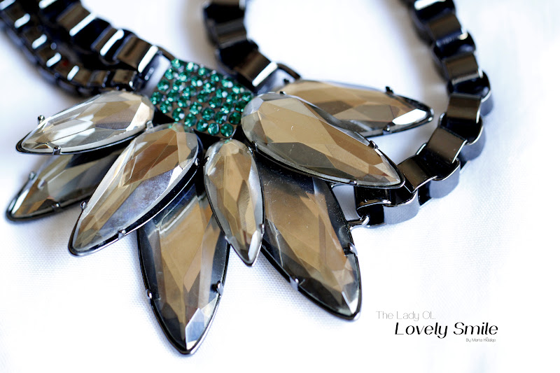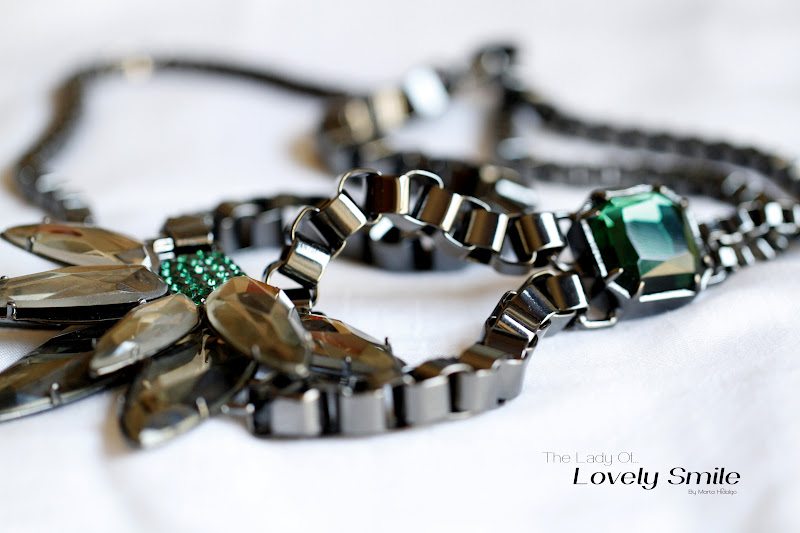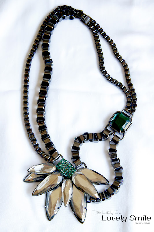 Precioso collar de la pasada colección de Bimba & Lola. Me lo compre en el outlet y aunque al principio no estaba muy segura, después me pareció una buena inversion. Su precio original era de 110€ y me costo tan solo 39€. No he encontrado grandes ocasiones para darle uso puesto que es muy llamativo, pero pronto os enseñare un outfit con el. Ademas le da a cualquier look básico un toque especial. Me encantan los detalles en color esmeralda :) ¿Que os parece?