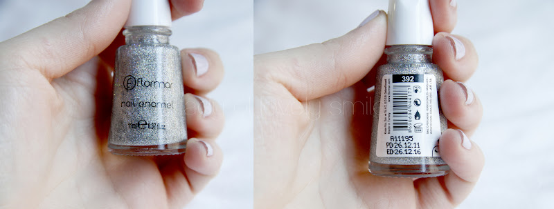 China Glaze & Flormar. ¿Que os parece esta combinación? Un esmalte color pastel entre lila y grisáceo con un toque de purpurina de mil destellos... A mi me encanta. Primero, porque los esmaltes de China Glaze, relación calidad-precio-cantidad, me parecen perfectos, aparte no manchan (sobretodo cuando tomo apuntes ja ja ja) y son los esmaltes que mas me duran, ademas de la variedad de colores, así como el precio, entre los 5.80€ y los 6.09€ en la web Maquillalia, donde yo compro todos los que tengo.  Segundo, porque desde que mi amiga Angela trabaja en Flormar (Centro comercial Nueva Condomina, Murcia) he descubierto otro lugar donde perderme, y es que estuve como 30 min pensando que esmalte de uñas me llevaba. Al principio el esmalte de purpurina plateada no me convencía, pero sin embargo, volví a los días para comprarmelo porque me había enamorado (no fue a primera vista ja ja ja). Si sois de Murcia yo de vosotras me pasaría por Flormar, le haría una visita a mi amiga Angela y veríais la gama de productos que ofrece esta tiendan de cosmética "low cost" pero de buena calidad.