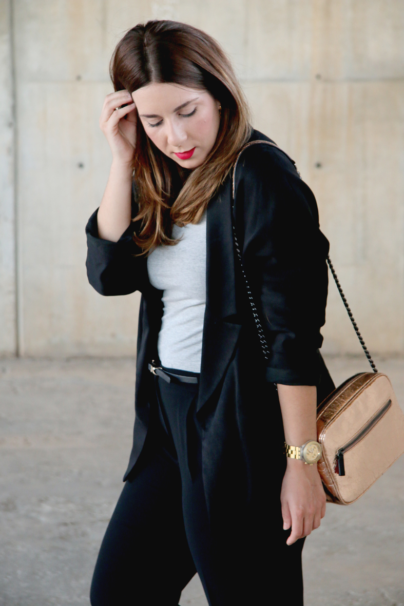 Aunque siempre he querido tener uno, nunca encontraba el que me viniera o simplemente me quedara bien. Para solucionarlo opté por combinar una chaqueta de Zara de rebajas de hace años con estos pantalones nuevos de Mango (que se han vuelto mi alternativa a los jeans). No son el mismo tejido y claro, tampoco el mismo color de negro ya que la chaqueta es mas antigua pero... ¡Combinan de 10 y no se nota nada!