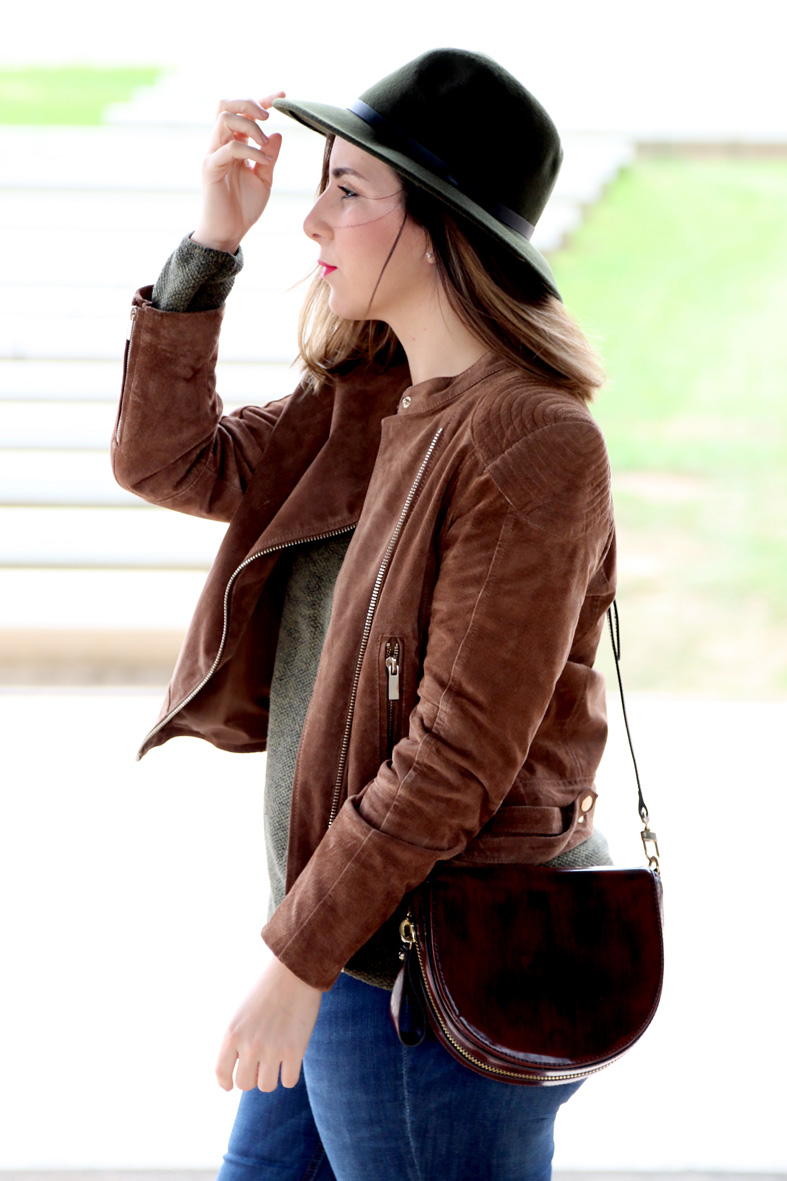 En Murcia pasamos de un extremo a otro, la verdad es que no tenemos muchos días de "entretiempo" pero cuando hacen esos días hay que aprovecharlos, por eso combine un jersey calado que no es muy grueso con una de mis biker favoritas de piel. Todo ello con complementos en los mismos tonos que la ropa y unos jeans básicos.