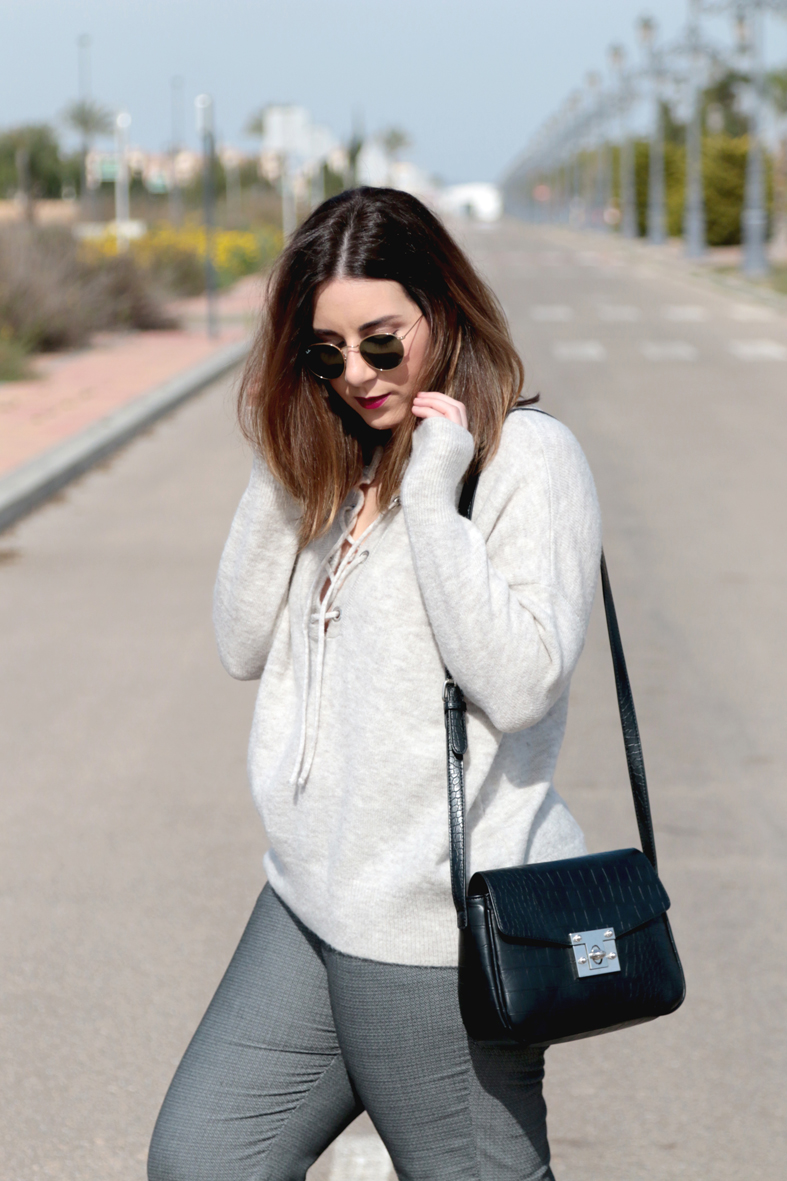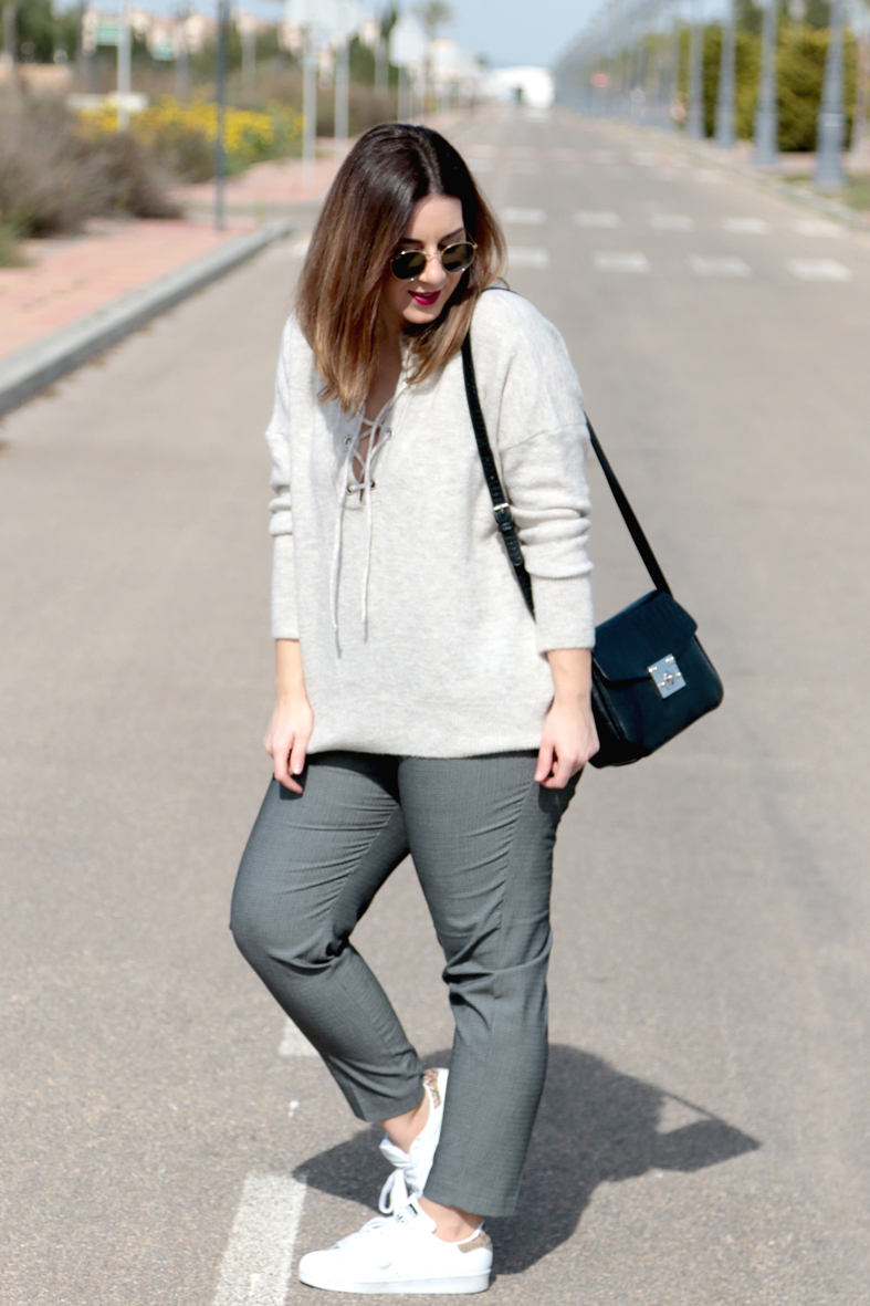 Este creo que de los 3 looks es sin duda mi favorito, con el que mas comida iba. Creo que los tonos de gris combinan a la perfección, el toque negro rompe un poco el look y las zapatillas blancas dan mucha luz.