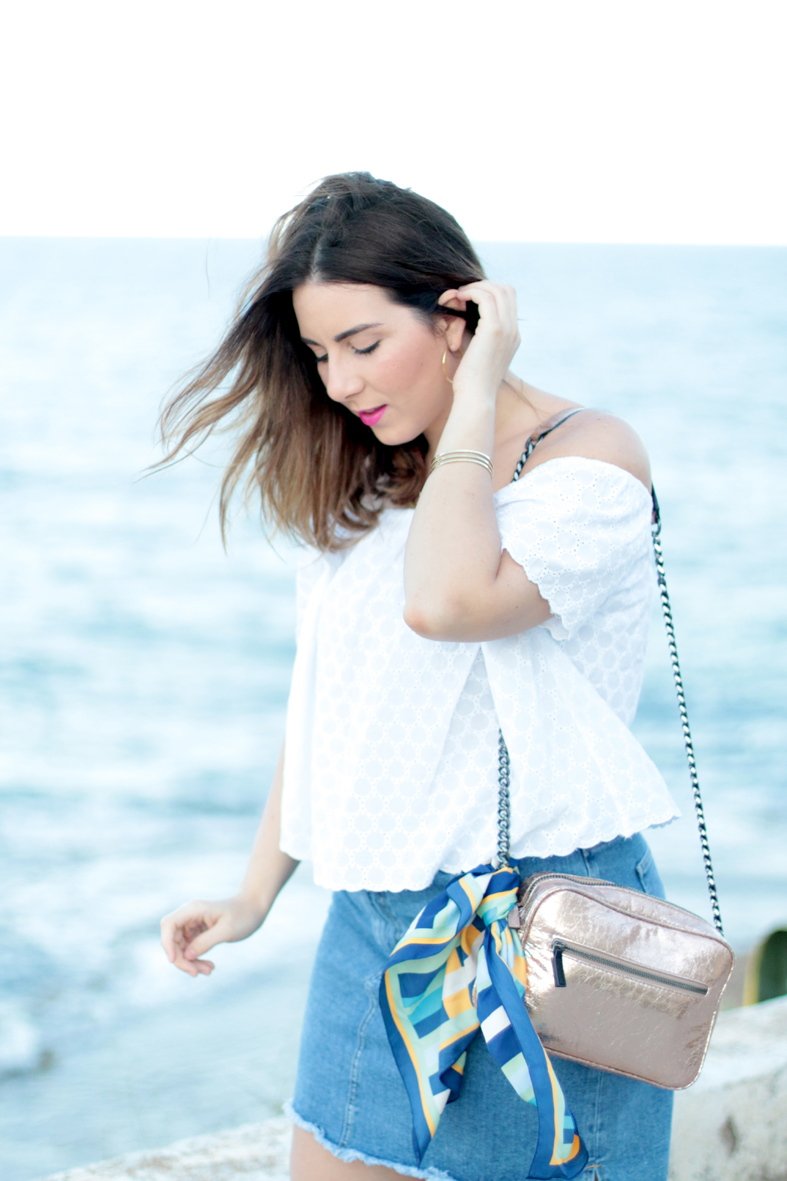 ¡Buenos días! Por fin vuelvo por aquí que tenía muchas ganas. Un básico en verano para mi es una falda vaquera y un top con hombros al aire. En este caso la falda es algo diferente ya que es asimétrica siendo más corta por delante que por detrás y por eso ¡me encanta!. Y ademas, este top de Zara de hace años que no pasa de moda es perfecto para cualquier día de verano ya sea para dar una vuelta como para salir de fiesta y encima comodísimo ¿podemos pedir más?.
