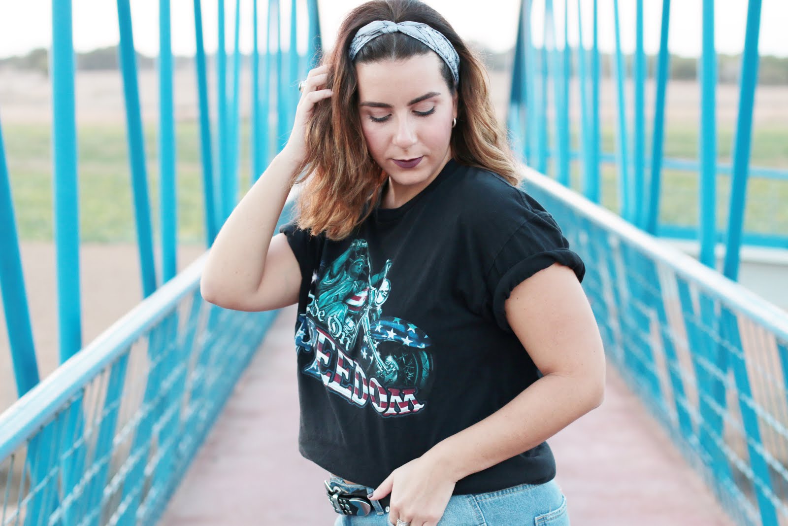 Pero no solo eso, es que también es super tendencia ponerse bandanas tanto en el pelo, en la muñeca incluso a modo de cinturón. Esta también me encanta y creo que el conjunto en si tiene una armonía de colores que junto con el sitio encaja a la perfección.