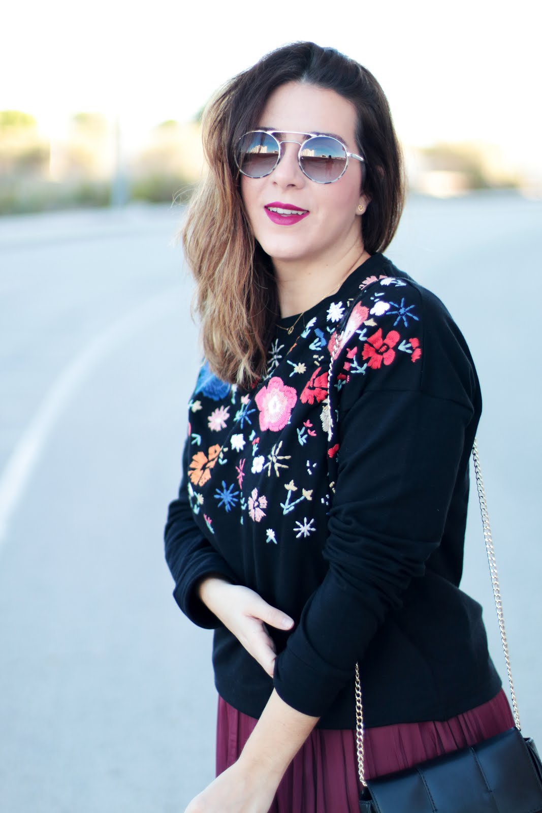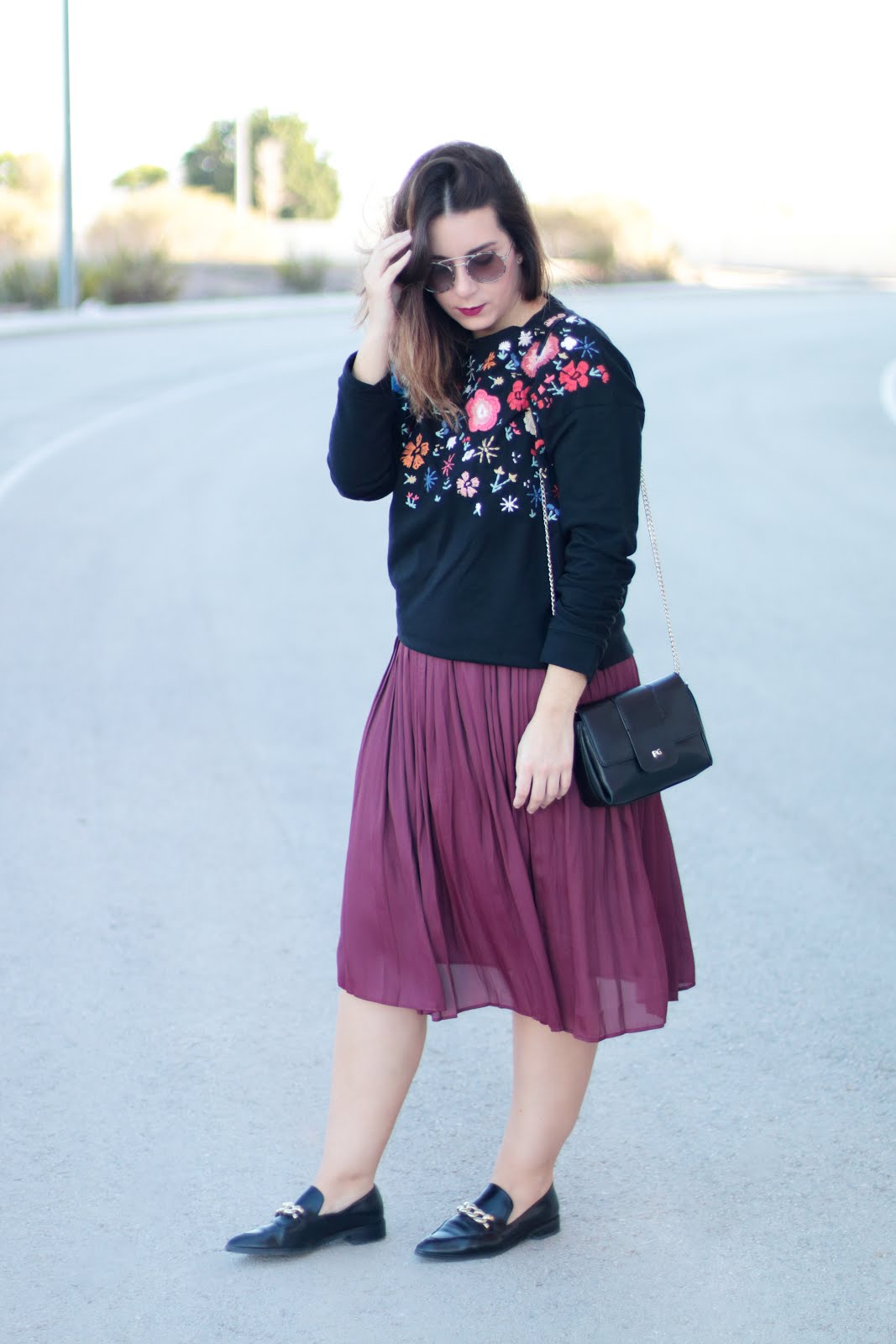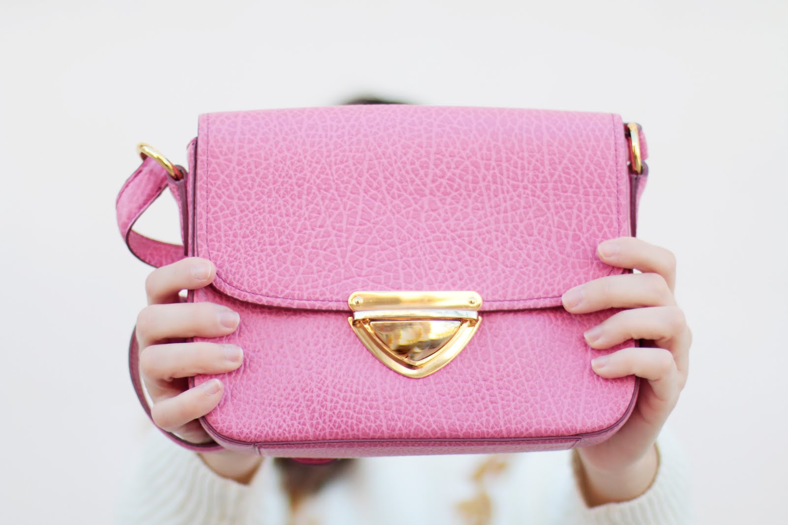 Busqué un abrigo en mi armario para ponérmelo y no encontré mejor opción que este en color rojo tirando a fresa; luego pensé en un bolso: cómodo grande pero elegante, y este que tenia en el armario fue el elegido.