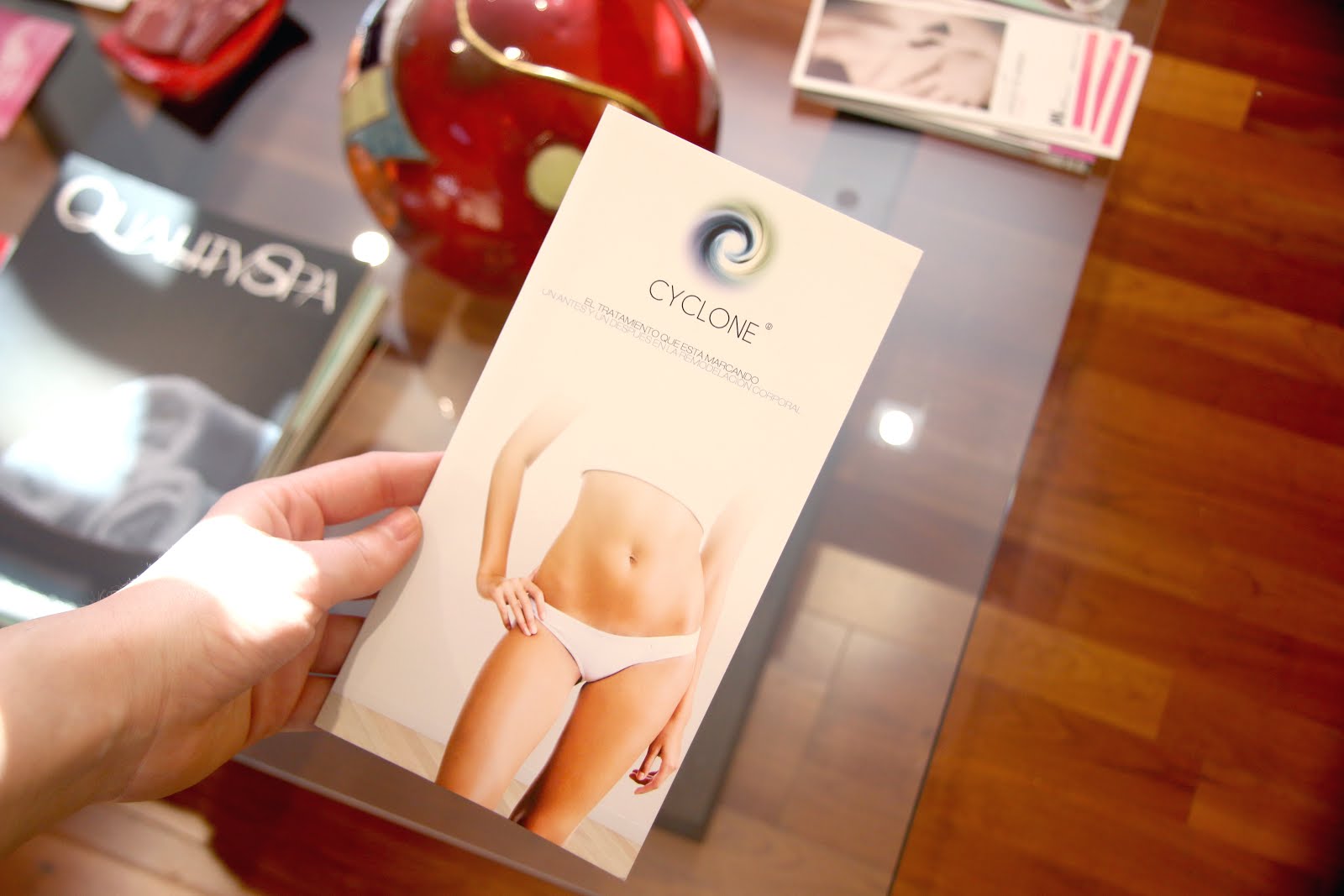 Como ya os conté se trata de un tratamiento de remodelación corporal que dispone en un mismo aparato de 5 tecnologías que se aplican en una sola sesión, algunas de las incluso de manera simultánea. Estas 5 tecnologías son: HIFU (ultrasonidos localizados de alta intensidad), vacunterapia rotativa, radiofrecuencia bipolar, radiofrecuencia monopolio y ultrasonidos cavitacionales. Lo que vamos a obtener de Cyclone durante nuestra sesión es: desfibrosado, una liporreducción, un drenaje linfático y reafirmación de la piel.