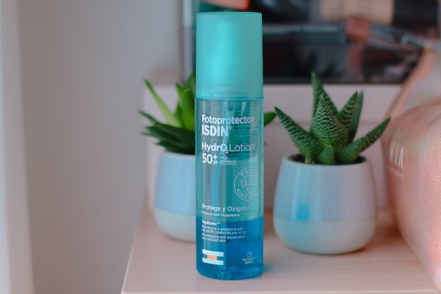 Como os he dicho, la piel es tan importante como los ojos cuidarlos, sobre todo, esta época del año. Este verano me he lanzado a probar el nuevo protector solar de Isdin Hydro Lotion SPF50+. Una de las curiosidades de este fotoprotector es que minimiza el impacto en el medio marino ya que un 80% de sus ingredientes son biodegradables y/o inorgánicos ¿curioso, verdad?. Además, se seca en un plis-plas y no solo protege sino que hidrata la piel al mismo tiempo.