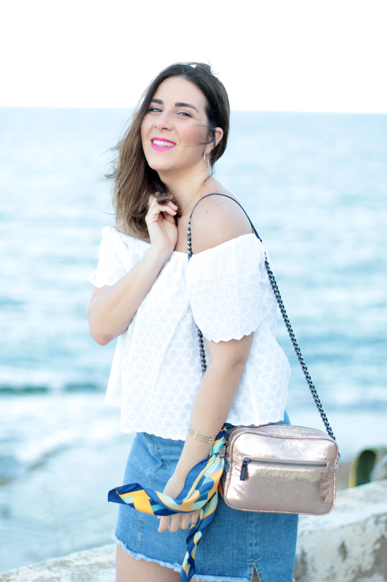 ¡Buenos días! Por fin vuelvo por aquí que tenía muchas ganas. Un básico en verano para mi es una falda vaquera y un top con hombros al aire. En este caso la falda es algo diferente ya que es asimétrica siendo más corta por delante que por detrás y por eso ¡me encanta!. Y ademas, este top de Zara de hace años que no pasa de moda es perfecto para cualquier día de verano ya sea para dar una vuelta como para salir de fiesta y encima comodísimo ¿podemos pedir más?.