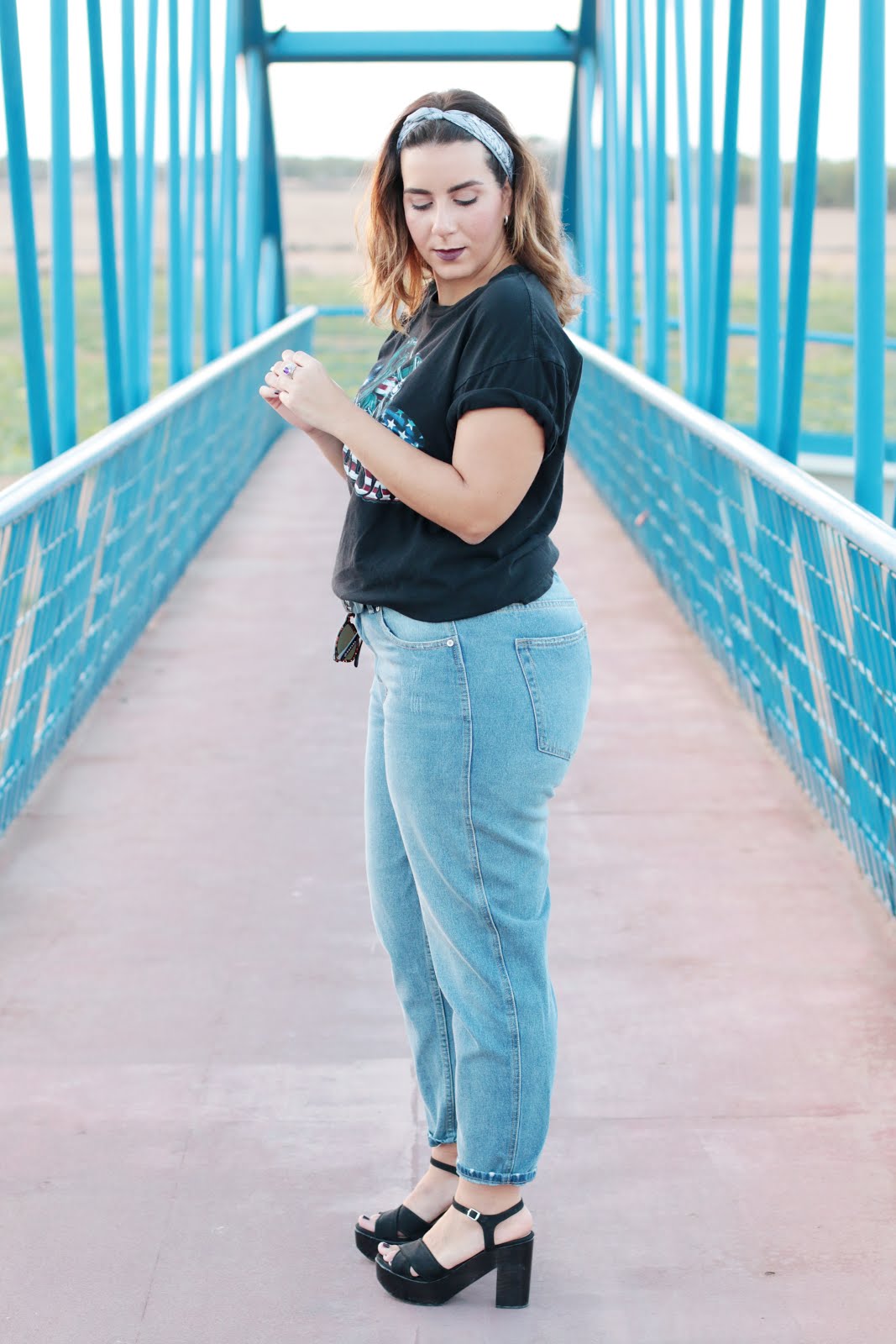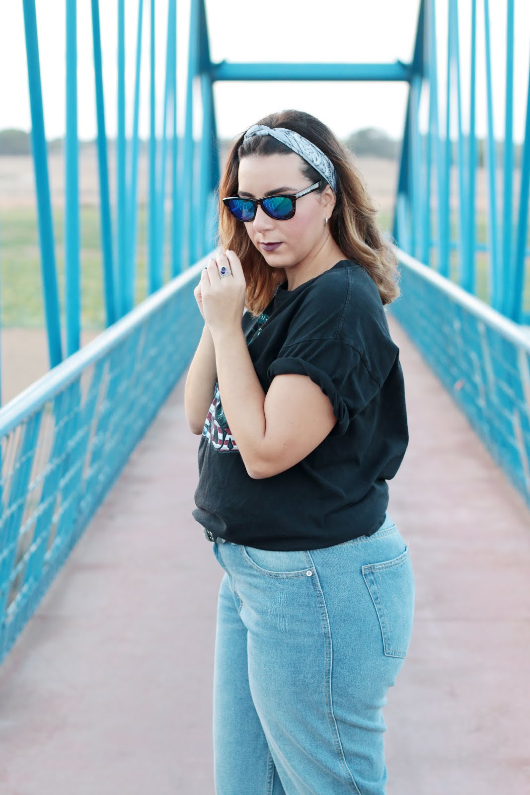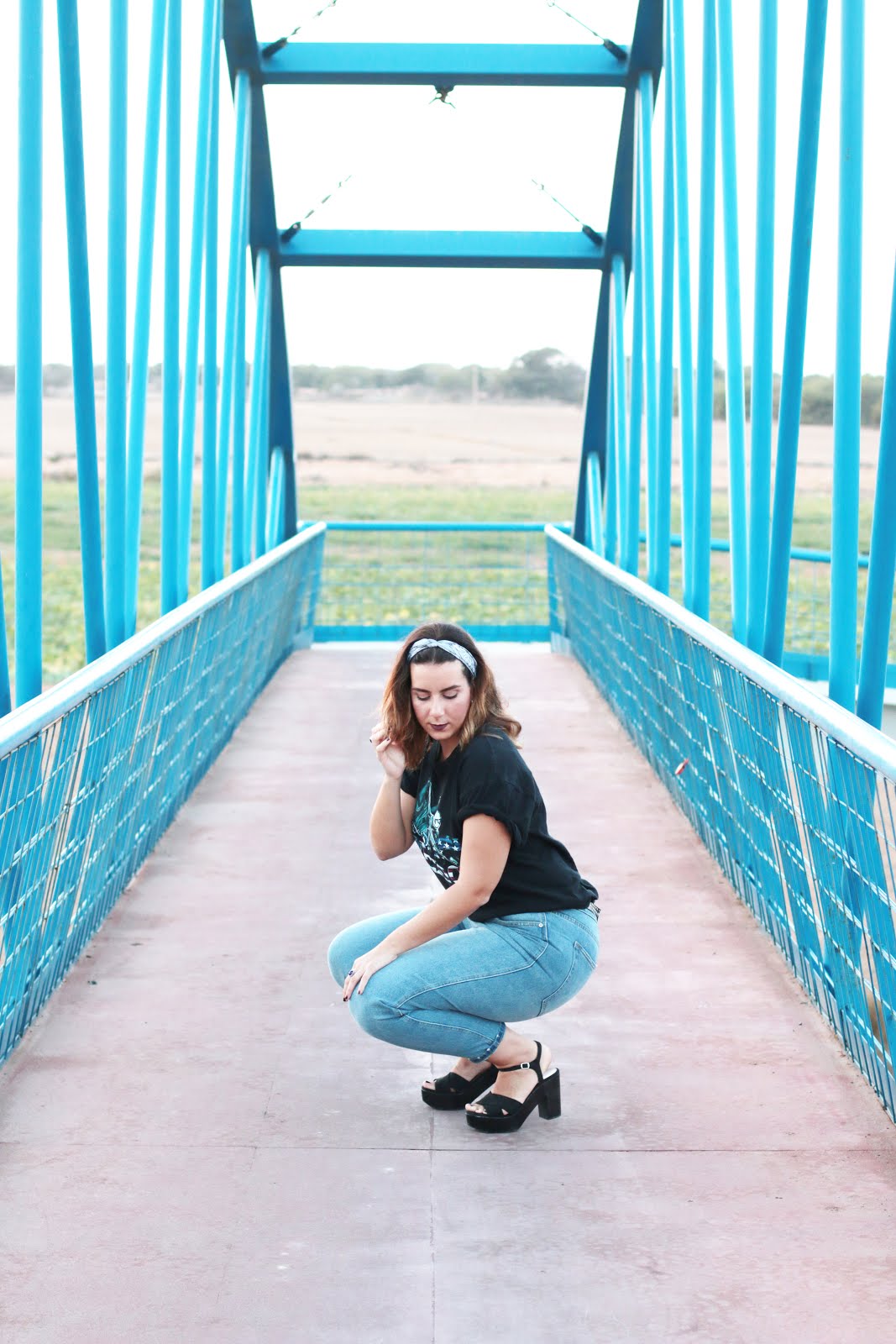 Pero no solo eso, es que también es super tendencia ponerse bandanas tanto en el pelo, en la muñeca incluso a modo de cinturón. Esta también me encanta y creo que el conjunto en si tiene una armonía de colores que junto con el sitio encaja a la perfección.